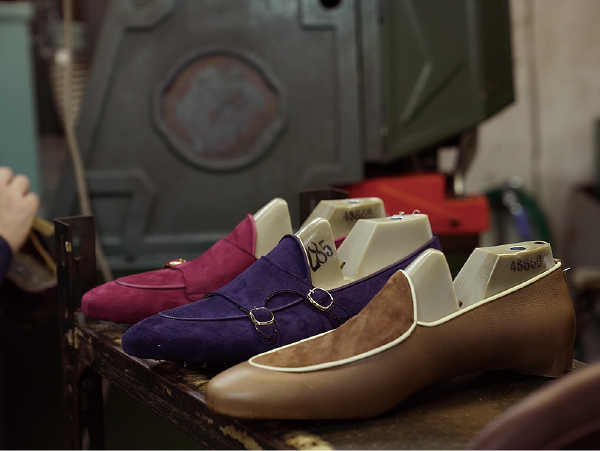 様々なデザインで多数のレザーを使用した、サンプルシューズを揃えておりますので、まずはどのようなローファーをお創りになりたいかをイメージしていただきます。